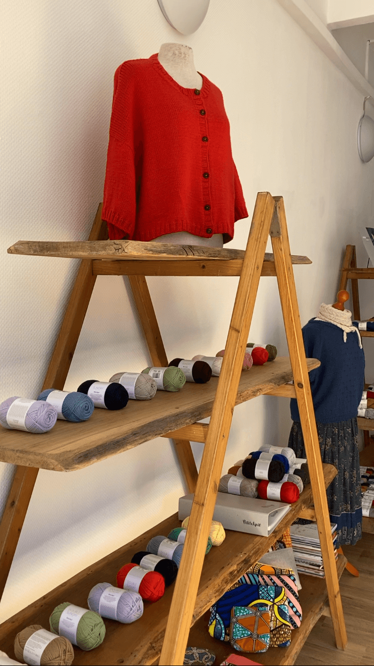 Während der Corona-Pandemie stieß ich per Zufall auf die Strickkunst der Isländer und erlernte das Stricken der farbenfrohen „Lopapeysa“. Von da an gab es kein Halten mehr und nun habe ich meinen Traum verwirklicht: „La Pelote“ ist mehr als ein Wollgeschäft – es ist ein Ort der Begegnung und des Austauschs. Neben Wolle, Garnen und Zubehör gibt es eine gemütliche Sitzecke sowie handverlesene Bilder und nachhaltigen Schmuck.